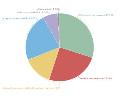 La durata media del procedimento si attesta a 29 giorni e gli esiti sono vari, come indicato nella tabella sottostante.