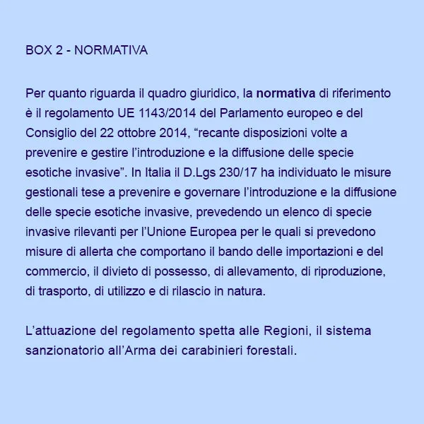 Al contrario, i fattori che favoriscono le specie esotiche invasive, fenomeno in intensificazione a partire dagli anni ‘50 con alterazione degli ambienti naturali, perdita di biodiversità, cambiamento uso del suolo, risultano essere: