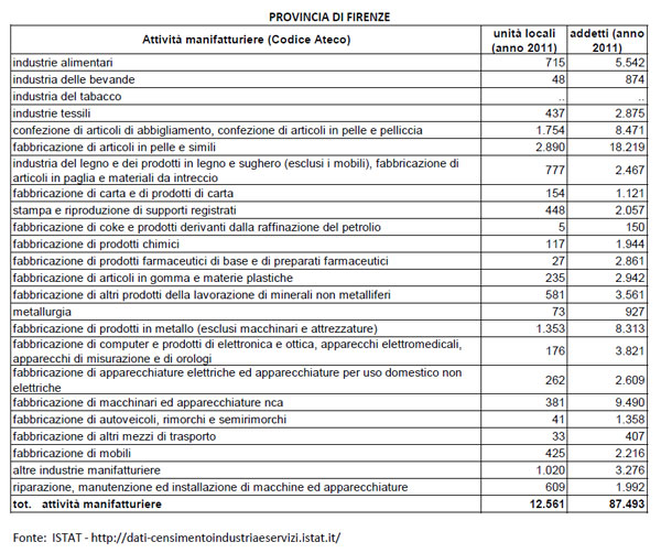 Unità locali e addetti delle imprese manifatturiere (dati ISTAT 2011)