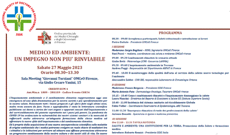 Il Responsabile scientifico dell’evento è il Dr Franco Bergesio, Presidente ISDE (International Society of Doctors for Environment) di Firenze.