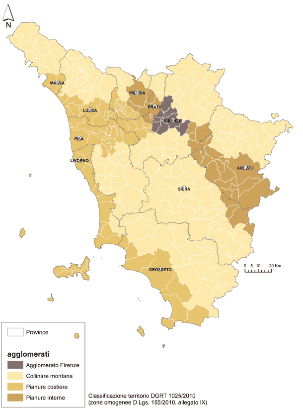 Sulla base di tali caratteristiche è stato individuato un unico agglomerato costituito dal Comune di Firenze e dai comuni limitrofi di Bagno a Ripoli, Campi Bisenzio, Scandicci, Sesto Fiorentino, Calenzano, Lastra a Signa, Signa, definito “Agglomerato di Firenze”.